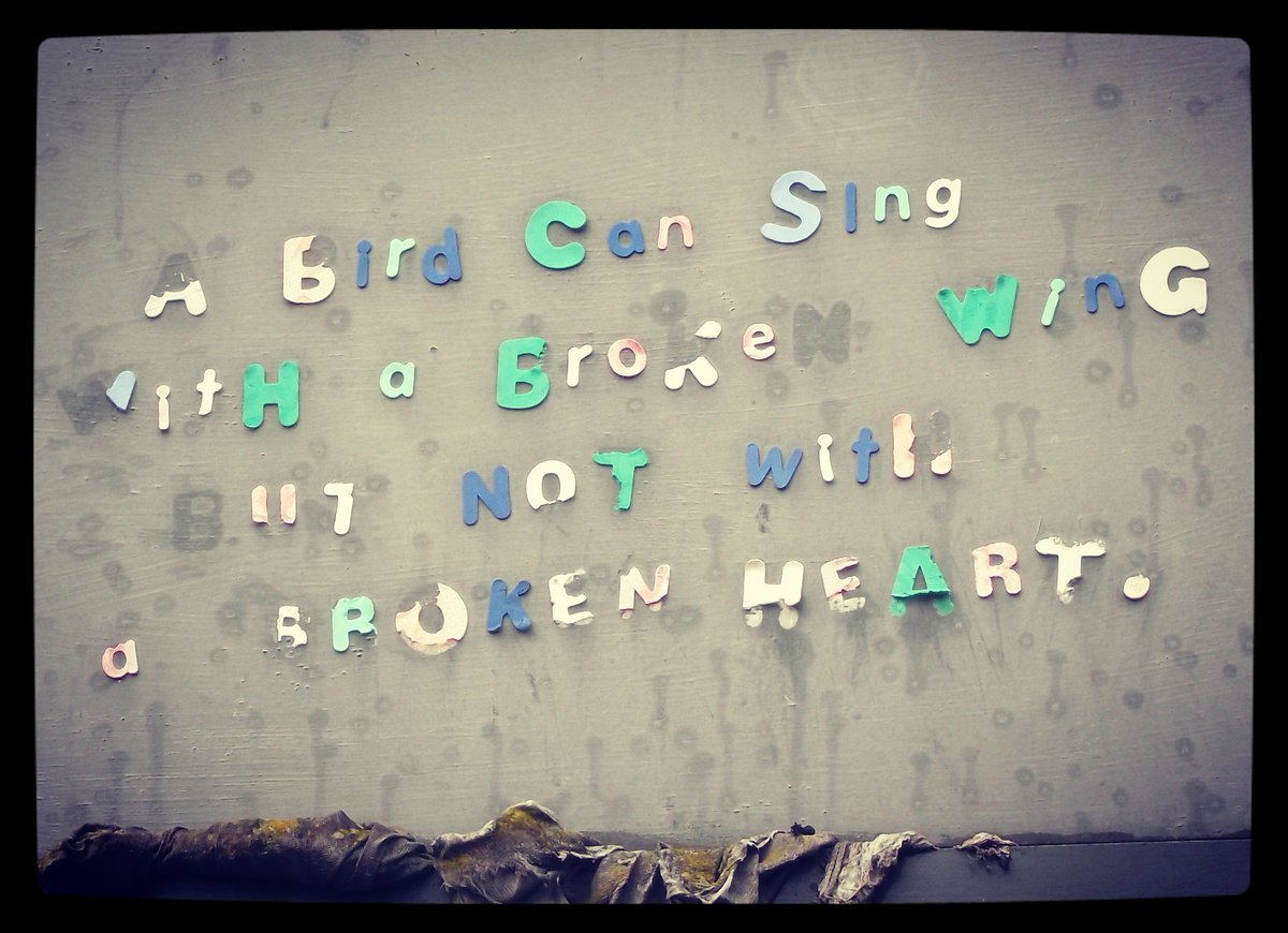 'A bird can sing with a broken wing but not with a broken heart' #graffiti in #Portadown  #streetart #urbanart  @Belfast_Beyond   #adirhapsody #r8c #CarpeDiem #Rhapsody pass the time, enjoy the day __ burung bisa nyanyi meski sayapnya patah, namun tak sanggup nyanyi dengan hati yang patah,